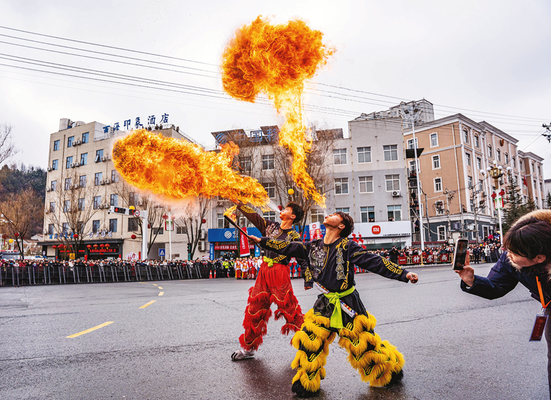 高芯社火、血社火、地台社火等非遗技艺轮番登场,秧歌、腰鼓、旱船、舞龙精彩纷呈。陇县是中国社火文化之乡,一年一度的正月十五社火展演更是万人空巷、精彩绝伦,高芯社火凌空起舞,背社火憨态可掬,秧歌社火婉转灵动,亮点不断。