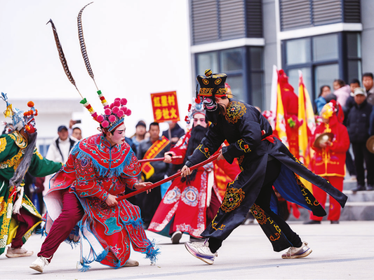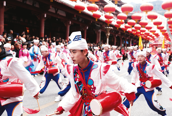 锣鼓似春雷。正月十一,地处主城区的渭滨区和金台区率先擂响新年的战鼓。渭滨区在宝鸡火车站广场举办锣鼓大赛,加入非遗十样锦、青铜文化、汉风古韵等元素,将传统锣鼓技艺与本土文化、时代元素深度融合。金台区的锣鼓大赛更突出文化传承,少儿鼓手的加入让传统民俗有了更为蓬勃的生机。此后,扶风、凤翔也先后举办锣鼓展演,让激越的锣鼓声响彻西秦大地。