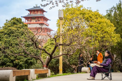 春分节气刚过,我市处处洋溢着春和景明的气息:渭水畔柳丝如烟,石鼓山上梅花竞相绽放、桃枝缀满嫩蕾,市民纷纷走出家门踏春赏景,不负春光。3月21日上午,市美术家协会在中华石鼓园举行采风写生活动,百余名美术爱好者用手中的画笔,将渭水碧波、枝头繁花与巍峨的石鼓阁化作笔下灵动的线条与温润的色彩,定格宝鸡春日之美。
