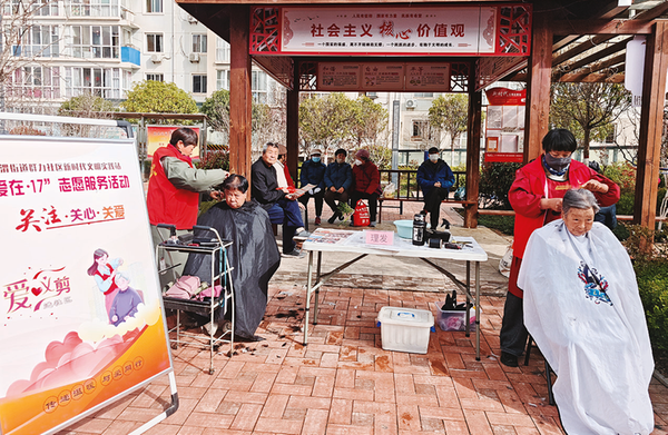 (宝鸡融媒 温瑶瑶)近日,陈仓区千渭街道群力社区以“二月二剃龙头”民俗为契机,开展“党建引领聚合力‘爱在·17’惠邻里”志愿服务活动,把义务理发、免费磨刀、口腔义诊、政策解读、节水宣传等便民服务送到居民家门口,提升群众幸福感与获得感。