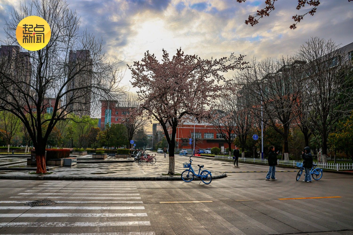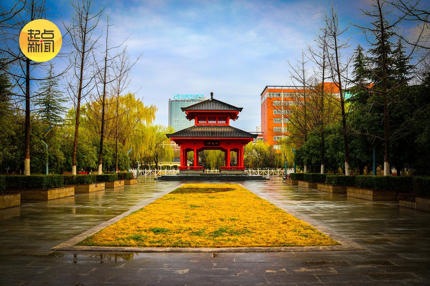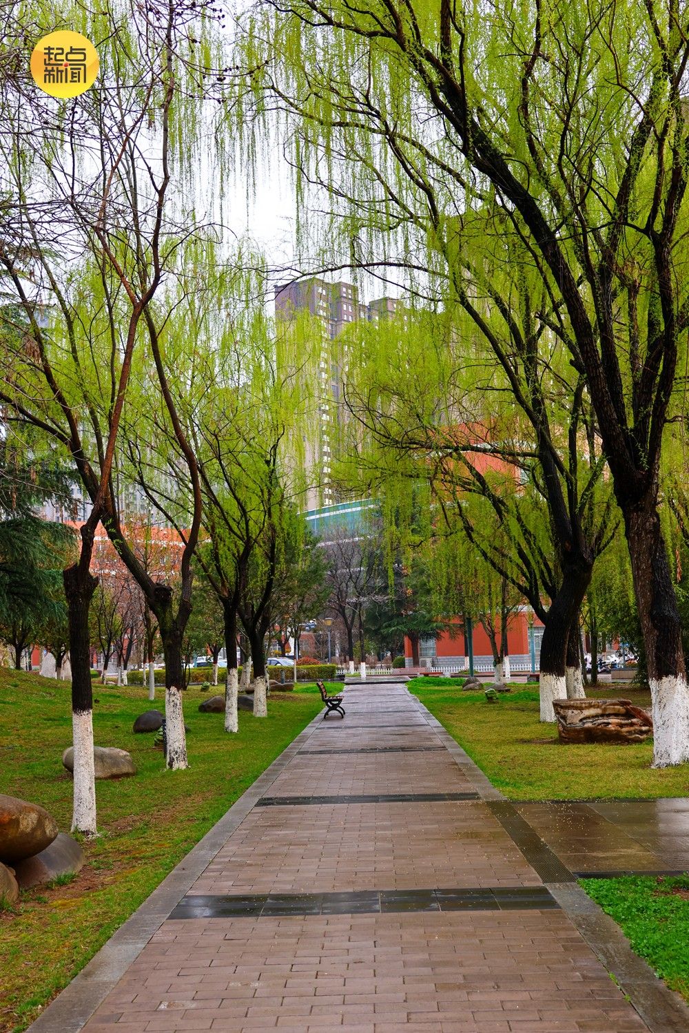 春雨初歇,宝鸡文理学院高新校区草木都浸在温润的水汽里。