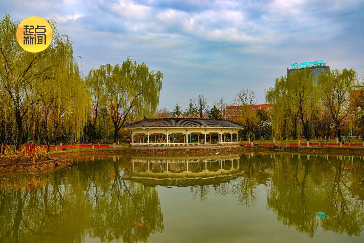 亭台与湖水相映,红墙与蓝天相衬,这是属于宝鸡文理学院的春日诗意,也是青春校园里最动人的生机与希望。