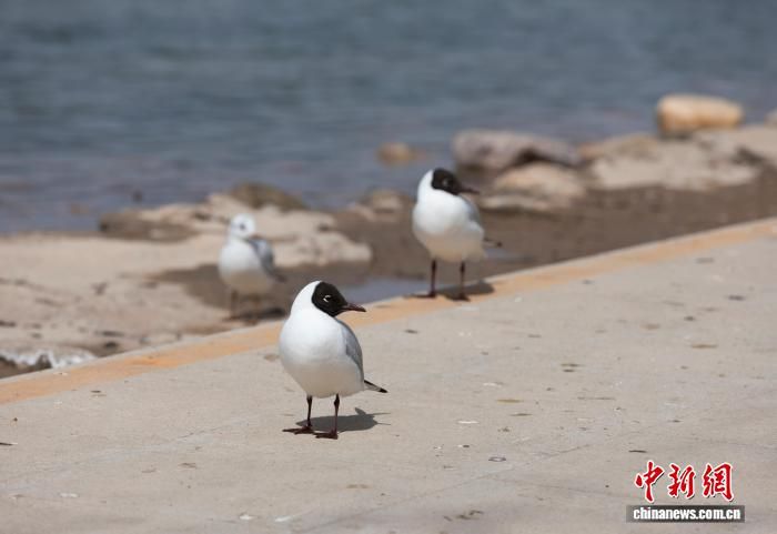 宁夏银川北塔湖边,红嘴鸥等候鸟恬憩其间。