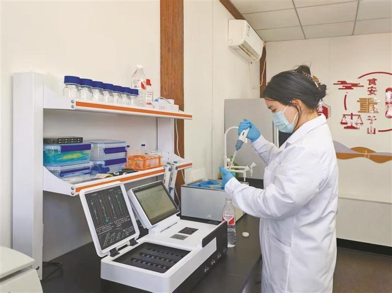 在位于金台区西府老街的食品安全快速检测室,工作人员在对当天取样的食品进行检测。