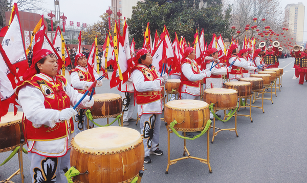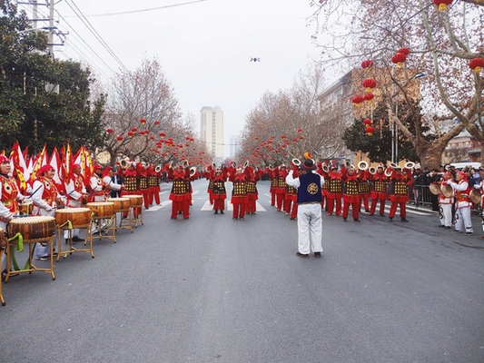 新春社火游演,横渠镇威风战鼓方阵亮相。