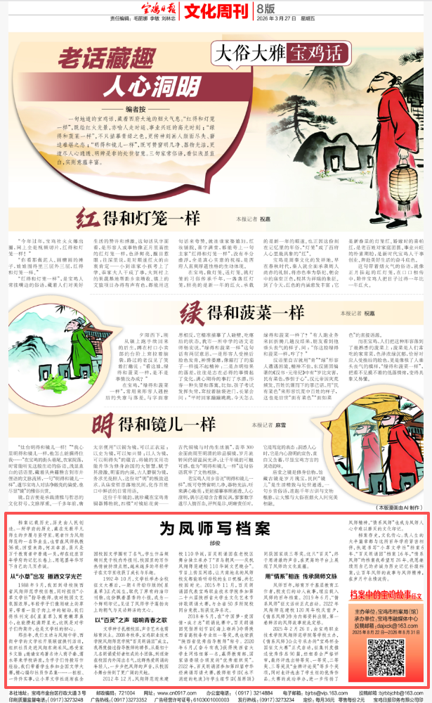 2025年2月26日,由宝鸡职业技术学院凤翔师范学院等学校主办,《情系凤师》公众号承办的“宝鸡杯全国征文大赛”正式启动,征集刊发推送优秀作品90篇,经组委会严格评审,最终评选出特等奖、一等奖、二等奖、三等奖及“金牌评论奖”等多个奖项,同时也评选出了学生组的优秀作品。大赛的成功举办,进一步传扬了凤师精神,“情系凤师”也成为凤师人心中难以磨灭的文化印记。
