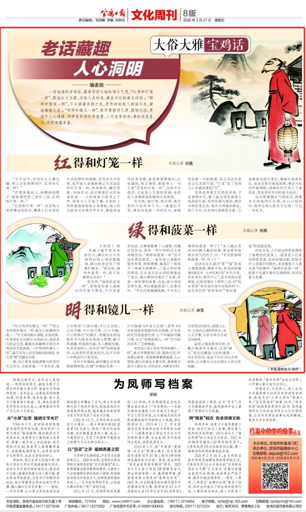 这句带着烟火气的俗语,就像正月挂起的红灯笼,在口口相传中,陪伴宝鸡人把日子过得一年比一年红火。