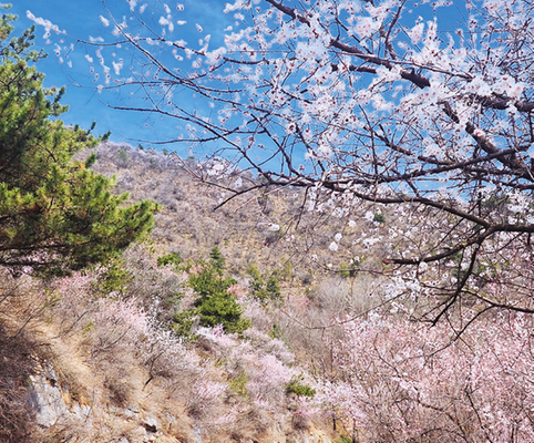 3月的山桃花远观如烟如霞,近看则娇艳欲滴,如果你想感受“世外桃源”的意境,那一定要来姚家沟镇洛峪村。这里没有刻意的雕琢,1500余亩山桃花顺着山势自然生长,铺陈出一幅壮观的春日山野图卷。