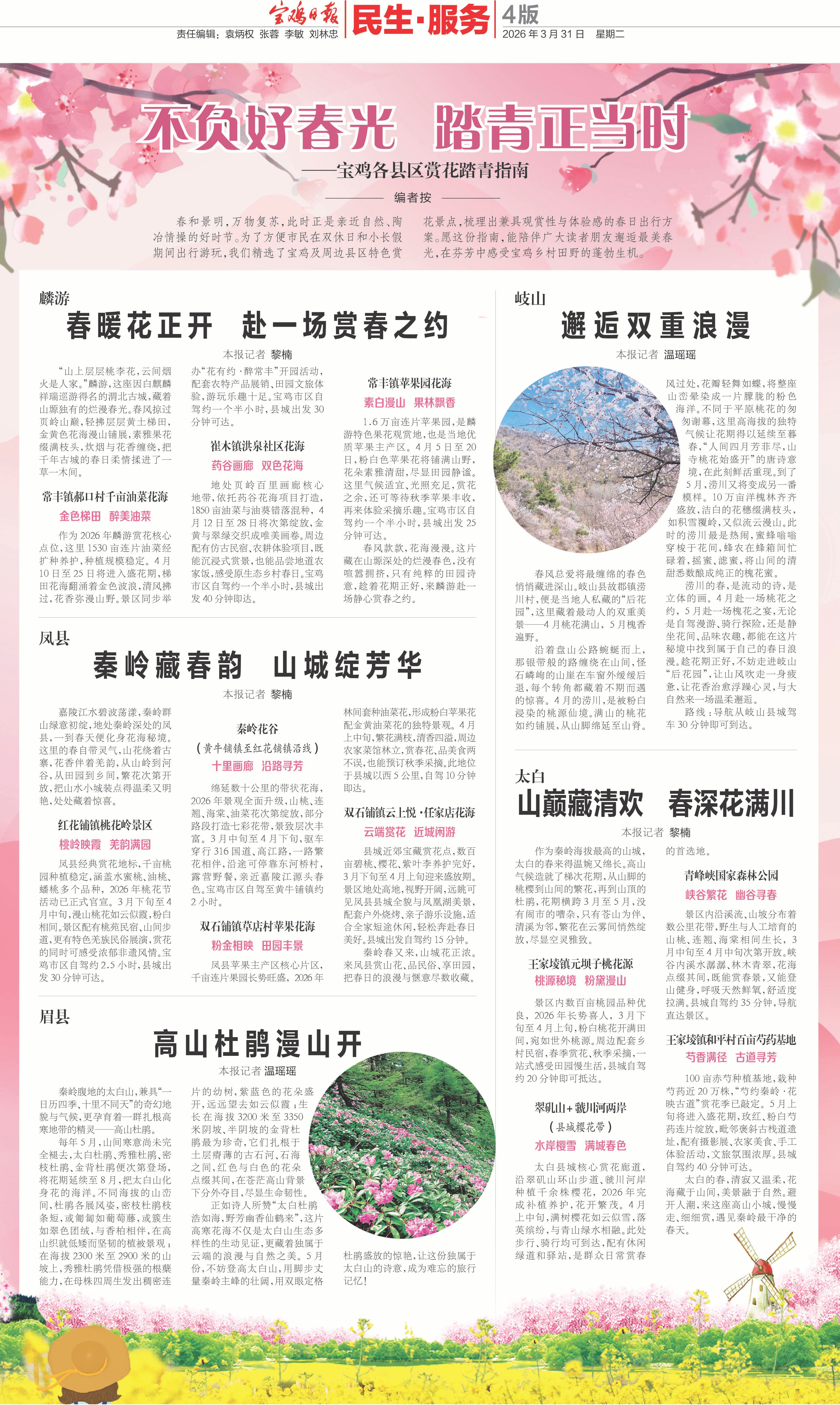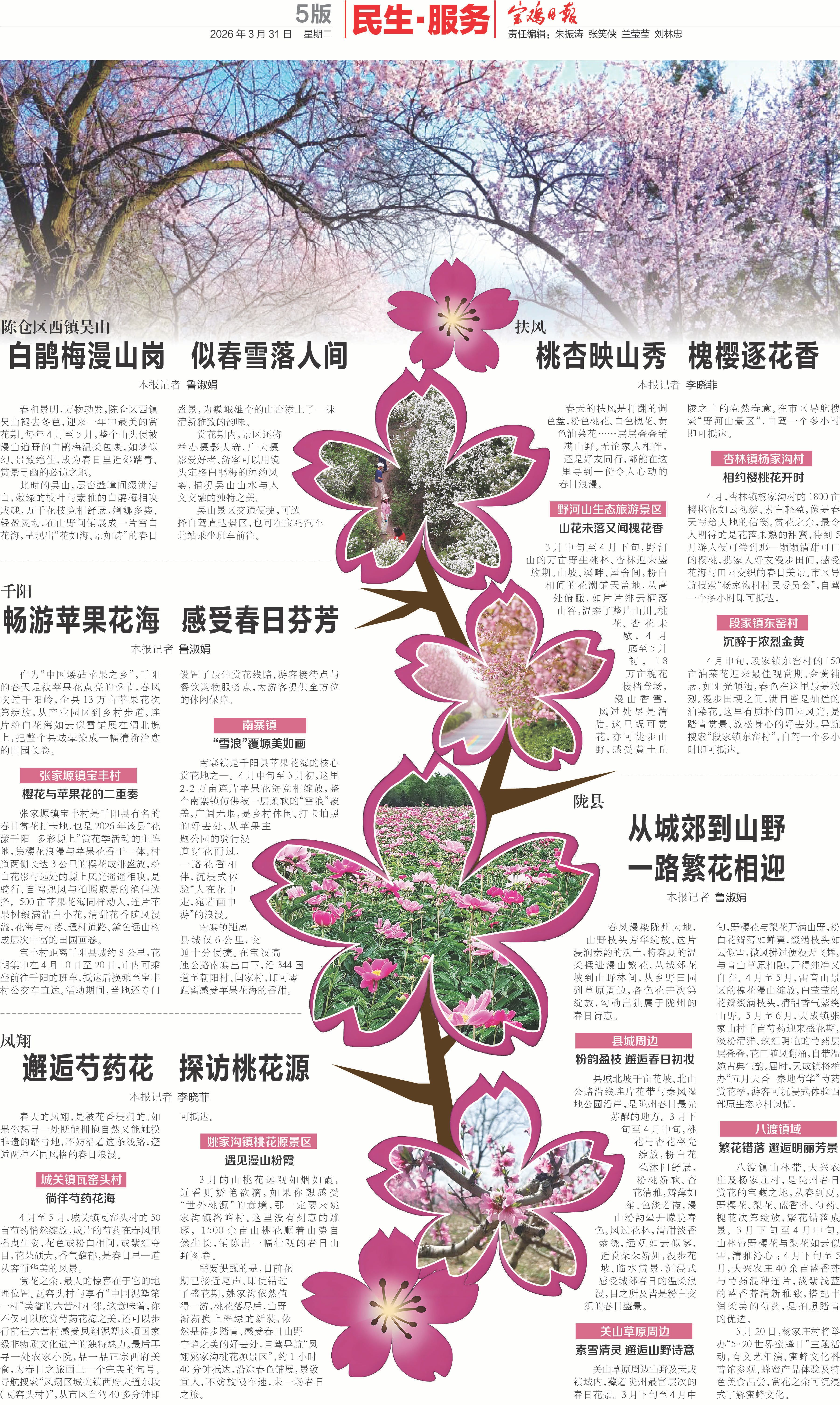 春和景明,万物复苏,此时正是亲近自然、陶冶情操的好时节。为了方便市民在双休日和小长假期间出行游玩,我们精选了宝鸡及周边县区特色赏花景点,梳理出兼具观赏性与体验感的春日出行方案。愿这份指南,能陪伴广大读者朋友邂逅最美春光,在芬芳中感受宝鸡乡村田野的蓬勃生机。
