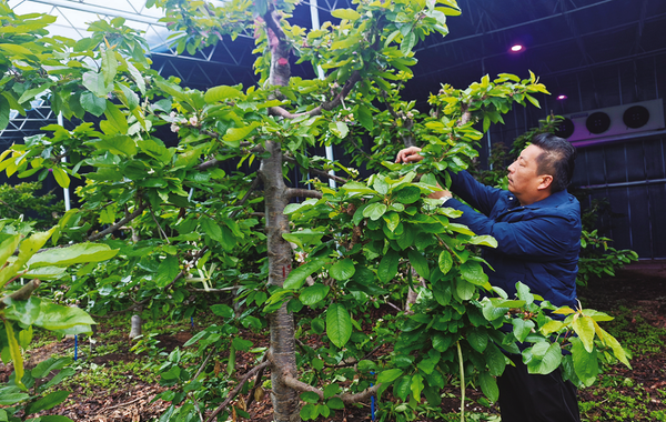 (宝鸡融媒 鲁淑娟)3月31日,扶风县杏林镇杨家沟村掩映在一片雪白的花海中,千亩露天樱桃园花开满枝。走进村上的智慧樱桃大棚,一排排樱桃树枝繁叶茂,一颗颗樱桃在枝丫间探出脑袋。“你瞧瞧,这顶上装着空调等设备,棚里温度、湿度,手指头一点就能调;再看看这满枝头的樱桃即将成熟上市,是高端市场争抢的‘香饽饽’。”村党总支书记杨炳斌滑动指尖,向记者展示着“云端”种果的新景。