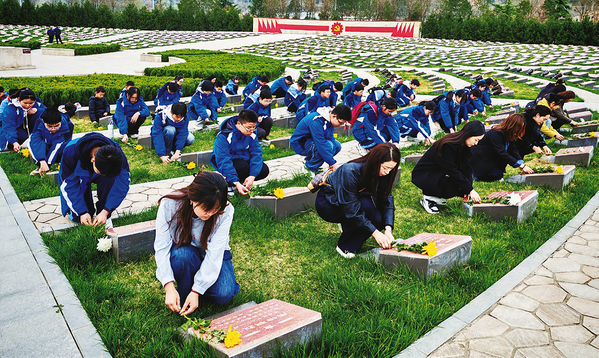 活动当天,青少年在烈士纪念碑前整齐列队、肃立默哀,向革命先烈致以崇高敬意。在讲解员的带领下,大家依次参观各展区,通过一幅幅历史照片、一件件实物和场景复原,重温了那段战火纷飞的峥嵘岁月,深刻感悟革命先辈不畏艰险、舍生取义的英雄气概。在祭扫仪式上,全体人员敬献花篮、三鞠躬,表达对英烈的深切缅怀。学生代表张夏函表示,要将缅怀之情化为学习动力,以昂扬姿态迎战中考,用优异成绩报效祖国。