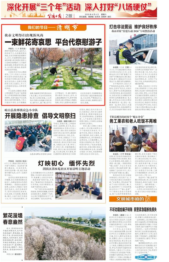 (宝鸡融媒 谢克强)清明节是缅怀先烈、追思先人的传统节日,也是推进移风易俗、弘扬文明新风的重要节点。近日,市殡葬管理处提前谋划部署,将文明祭扫宣传与公益事业创新融合,扎实做好服务保障,积极倡导文明、绿色、安全祭扫新风尚,营造移风易俗良好氛围。