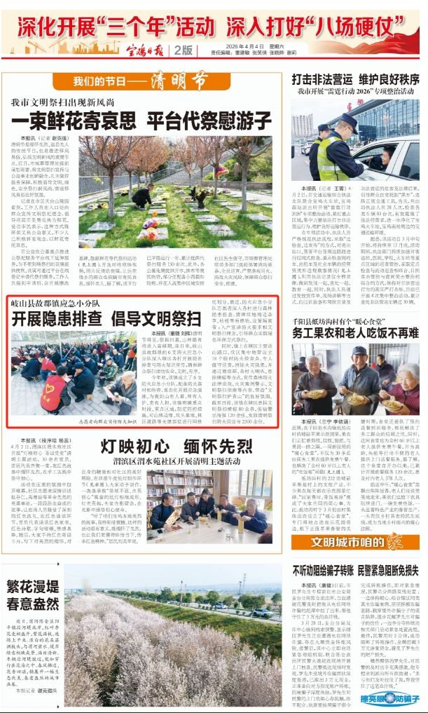 同时,镇上在辖区主要进山路口、坟区集中地带设立18个临时防火检查点,专人值守巡查,消除火灾隐患,并通过微信群、各村大喇叭、悬挂横幅等方式,宣传森林防火法律法规、火灾案例警示、文明祭扫指南等内容,营造“文明祭扫护青山”的良好氛围。截至目前,该镇在辖区悬挂文明祭扫横幅80余条、张贴警示海报120余张、发放清明祭扫防火倡议书2300余份。