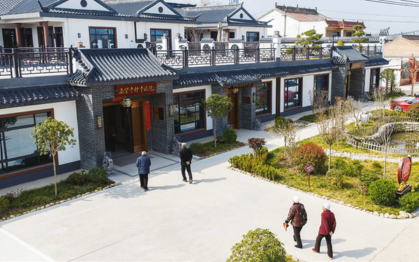 幸福院里老人在一起唠家常、品饭菜。