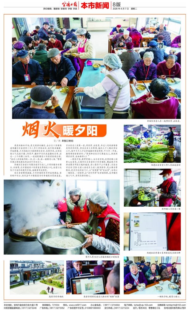 一顿热乎饭,暖胃更暖心。如今在宝鸡,这样的暖心场景比比皆是,从城市社区食堂到乡村幸福院,覆盖城乡的养老服务网络正越织越密。贴心服务不止于餐桌:目前全市还有2339名爱心助老员为老人提供陪伴、代办事务等服务,把关怀送到家门口。从“有保障”到“有品质”,宝鸡以一碗热饭、一份陪伴,让“老有所养”的幸福图景,在升腾的烟火气中,变得具体而暖心。