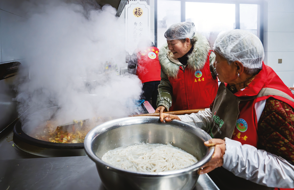 社区食堂暖意融融,乡村幸福院里同样温情满溢。每到晌午时分,扶风县午井镇高望寺村幸福院内笑语盈盈,百余位老人欢聚一堂,唠家常、品饭菜。年过八旬的康菊香是附近的村民,常来这里义务帮厨,她的儿子儿媳在西安工作,每年冬天儿子会把她接到西安照料。可今年一开春,康菊香就盼着回村:“就想和老伙计们聚在这儿,热热闹闹拉家常,比啥都舒心!”