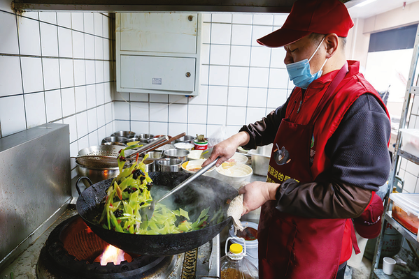 清晨的秦岭市场,晨光刚洒向摊位,金台区十里铺街道西建社区食堂的工作人员已穿梭其间。他们俯身翻看、仔细掂量,只为挑选当日最新鲜的食材。采购归来,后厨的烟火气迅速升腾:切菜声、翻炒声交织成温馨的乐章,经过一上午的精工细作,一道道软糯适口的饭菜陆续出锅。“给老人的饭做得软一些、烂一些,每一道都用心做。”管理员兼主厨赵建龙的话语朴实而动人。