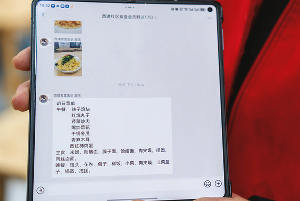 西建社区将每日菜单提前发至微信群