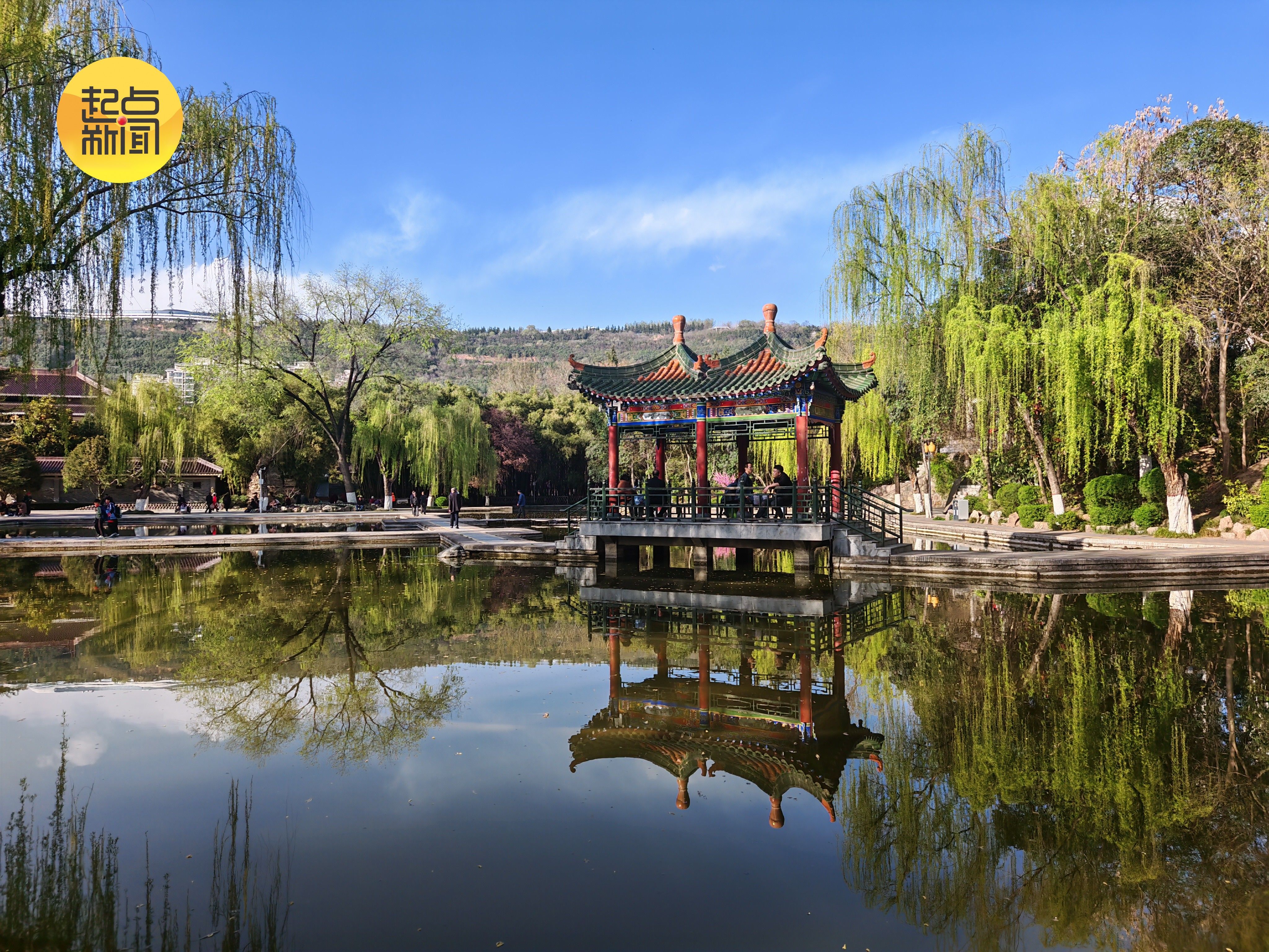 垂柳柔条轻垂,拂过碧波池水,将亭台倒影揉碎在粼粼波光里,古典园林的雅致底蕴在水光潋滟中缓缓流淌。
