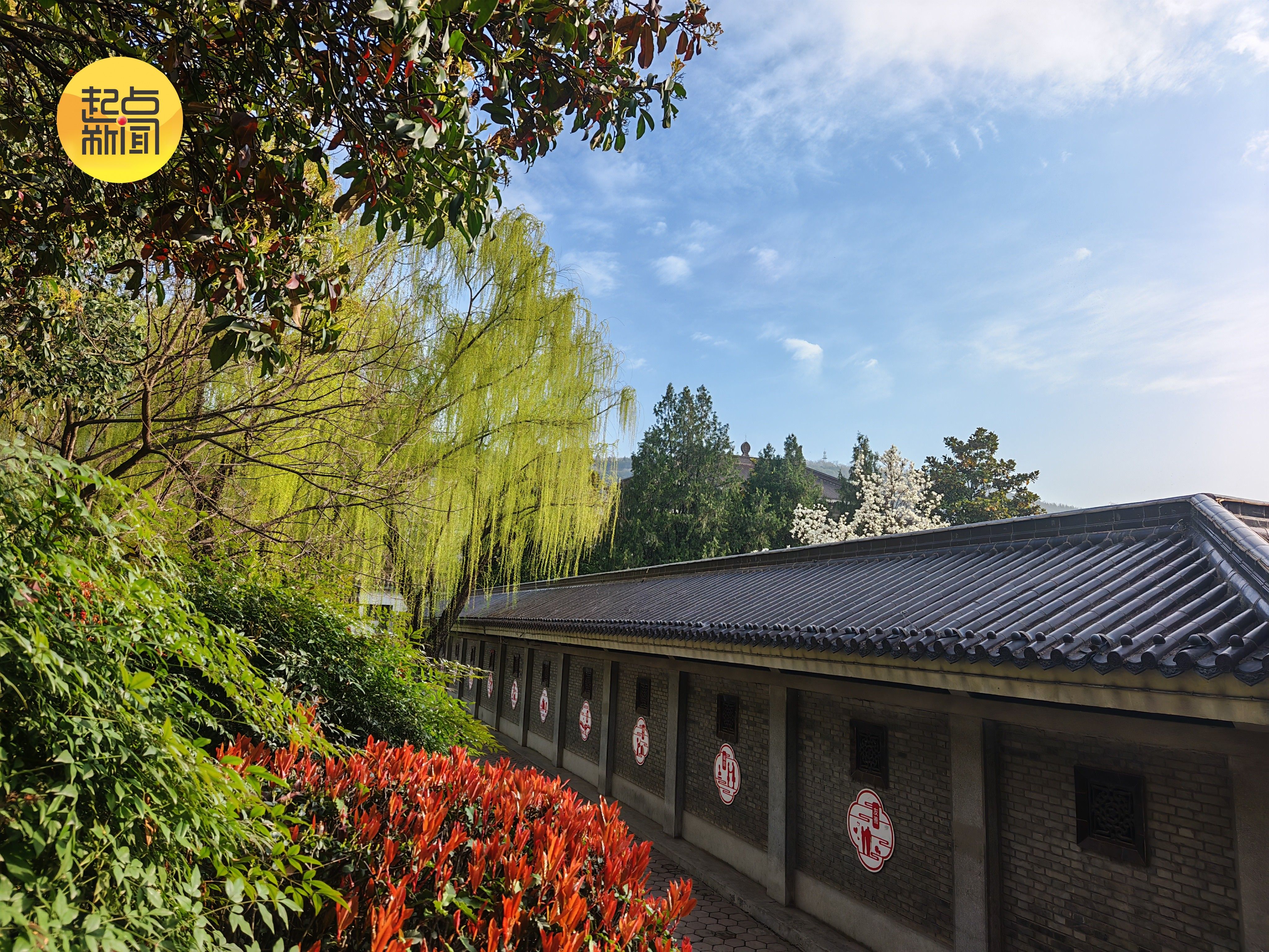 春风拂过炎帝园的飞檐黛瓦,青砖黛瓦的长廊旁繁花初绽,将一园春色缓缓铺展,尽显古朴雅致的春日底蕴。