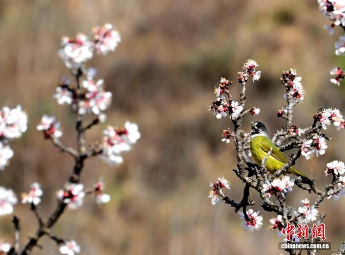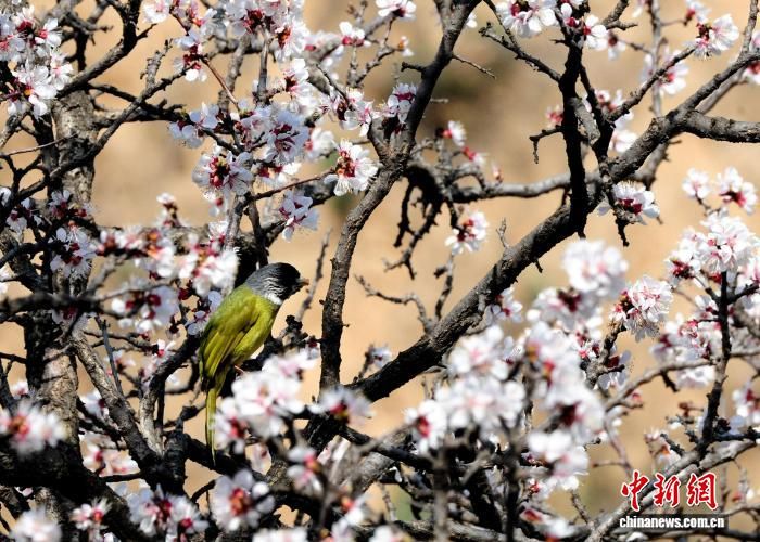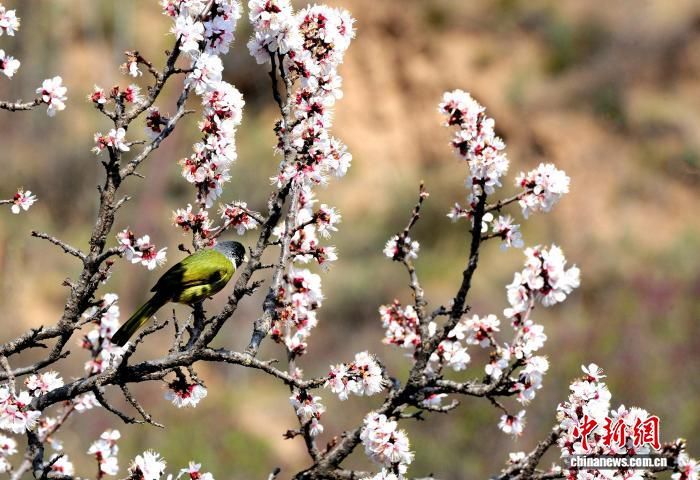 暮春时节,山西省万荣县孤峰山的杏花竞相绽放,粉白如云,暗香浮动。领雀嘴鹎栖于花枝间,橄榄绿的羽衣与繁花相映,黑顶白环格外醒目,为春日画卷添上灵动一笔。孤峰山良好的生态环境让各类鸟儿在此安家,绘就一幅“鸟语花香”自然和谐的万荣春日图景。