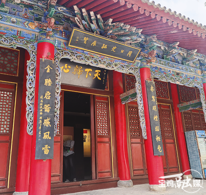 刘剑峰还特别提及周公殿的一副楹联:“赤舄(xì)明禋(yīn)昭秬鬯(jùchàng),金縢(téng)启籥(yuè)感风雷。”这副楹联记载了一次祭祀周公的场景,主祭者穿着红颜色的舄鞋、庄重的礼服,端着用于祭典的黑黍和郁金草酿造的香酒祭祀周公;主祭官随之想到了三千年前,周公金縢藏册的故事。这个故事,展现的是赤忱、担当、爱国的精神。