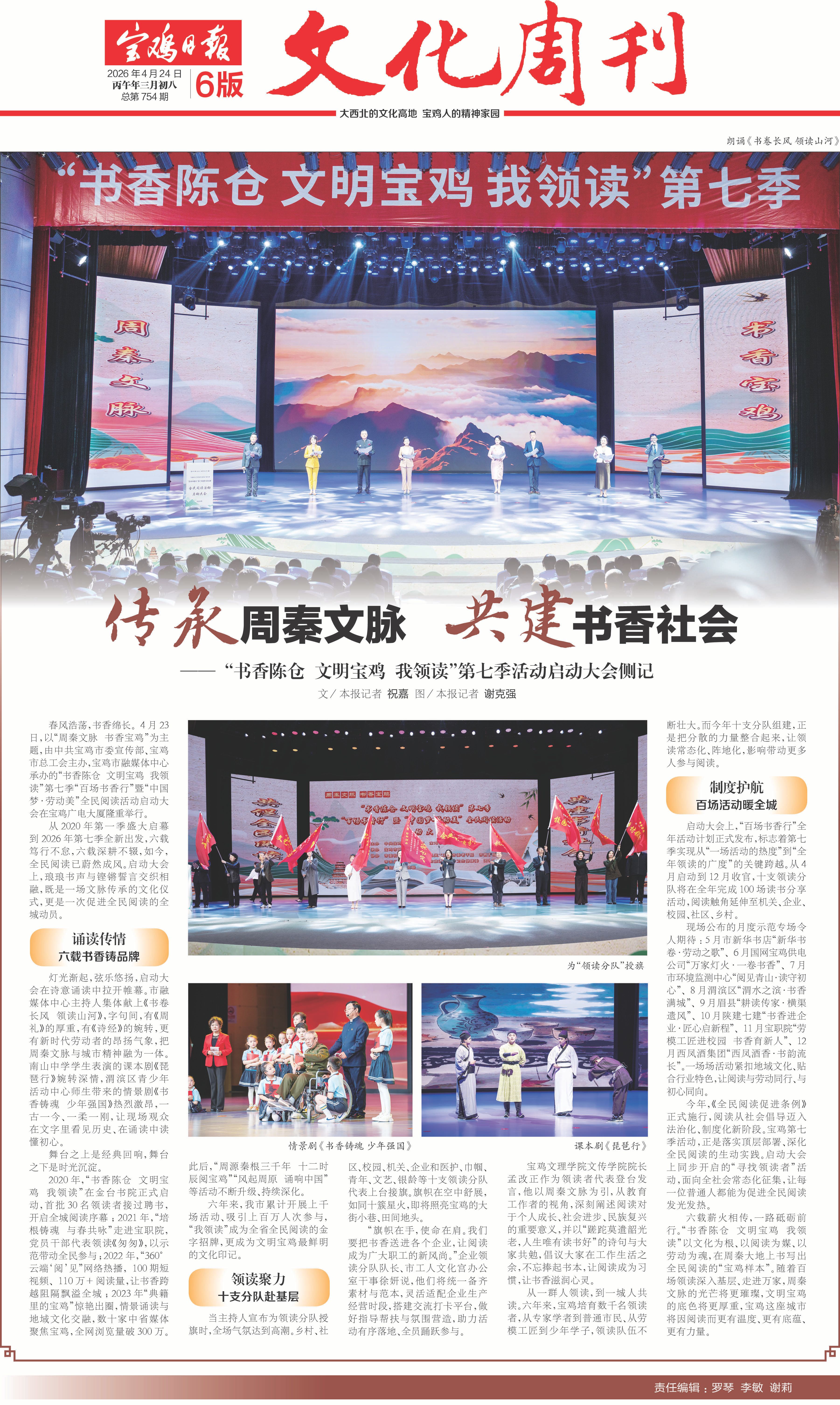 六载薪火相传,一路砥砺前行。“书香陈仓 文明宝鸡 我领读”以文化为根、以阅读为媒、以劳动为魂,在周秦大地上书写出全民阅读的“宝鸡样本”。随着百场领读深入基层、走进万家,周秦文脉的光芒将更璀璨,文明宝鸡的底色将更厚重,宝鸡这座城市将因阅读而更有温度、更有底蕴、更有力量。