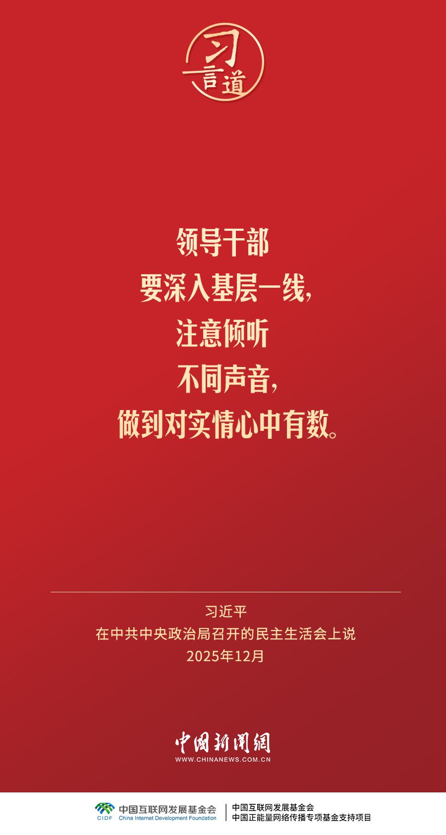 12月25日至26日,中共中央政治局召开民主生活会,中共中央总书记习近平主持会议并发表重要讲话。习近平强调——