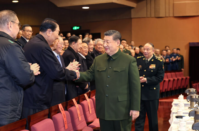 下午4时许,习近平来到老同志中间,全场响起热烈掌声。习近平同大家亲切交流、互致问候,关切询问他们的身体和生活情况,共同回顾过去一年党、国家和军队事业走过的不平凡历程、取得的重大成就。老同志们一致表示,要更加紧密地团结在以习近平同志为核心的党中央周围,坚持以习近平新时代中国特色社会主义思想为指导,深入贯彻习近平强军思想,深刻领悟“两个确立”的决定性意义,坚决做到“两个维护”,贯彻军委主席负责制,弘扬光荣传统、永葆政治本色,坚定信念、勇毅前行,为如期实现建军一百年奋斗目标、高质量推进国防和军队现代化作贡献。