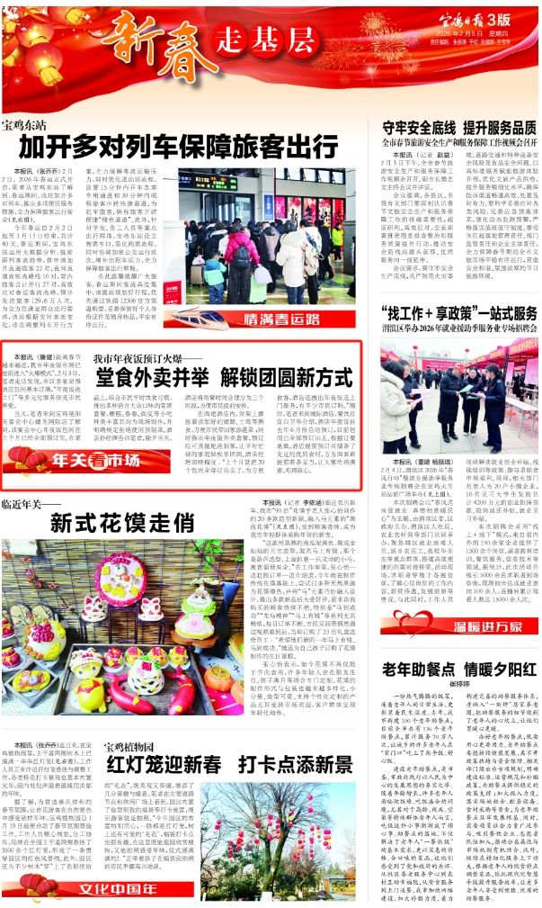 (宝鸡融媒 康健)距离春节越来越近,我市年夜饭市场已提前进入“火爆模式”。2月3日,笔者走访发现,市区多家星级酒店包间基本订满,“年夜饭送上门”等多元化服务深受市民喜爱。