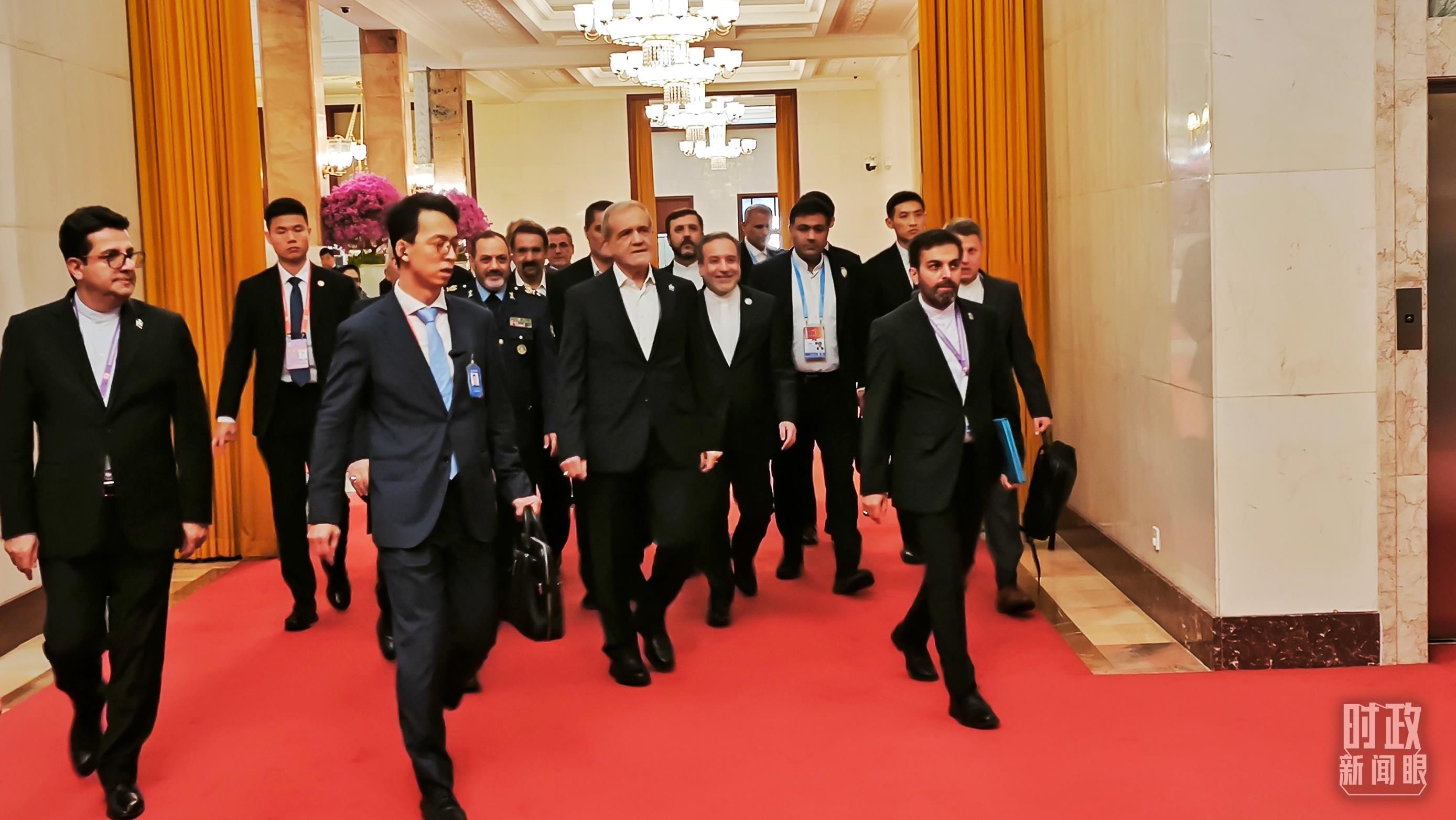 △伊朗总统佩泽希齐扬走向会见厅。(总台国广记者蔡靖骉拍摄)