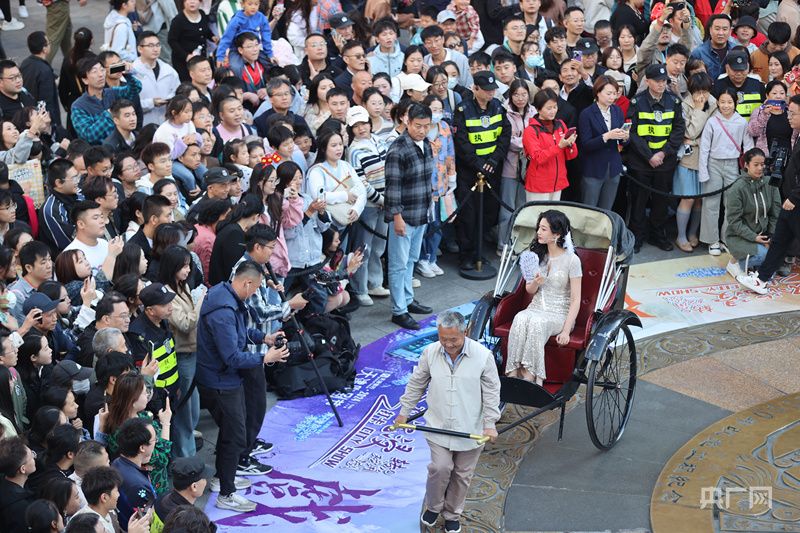 演员们在金街大铜钱广场为观众带来《日出》沉浸式演出(央广网记者 褚夫晴 摄)