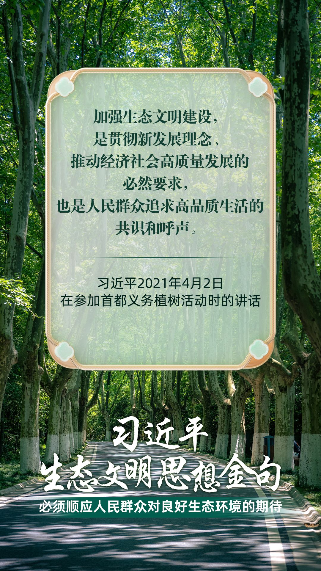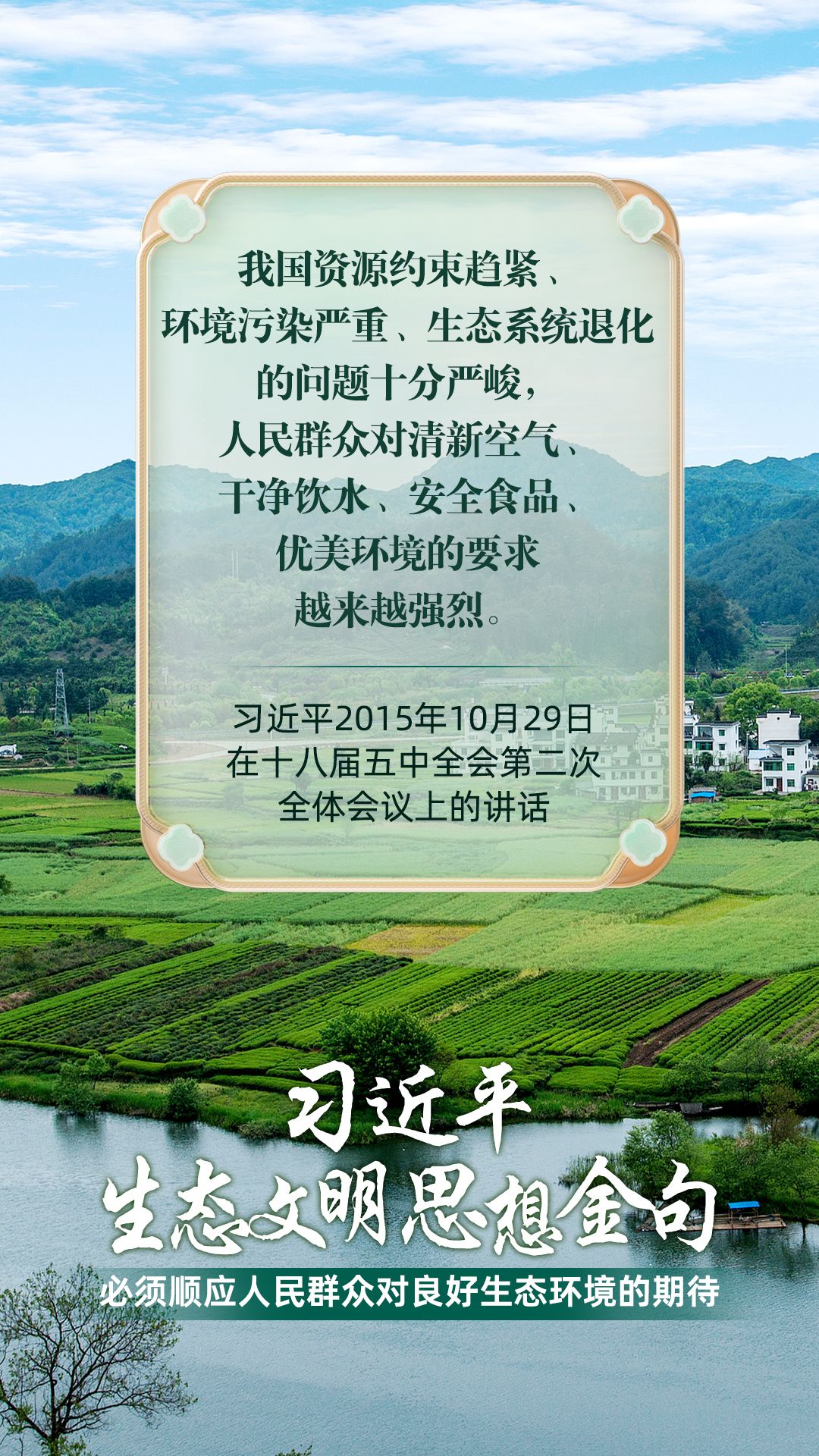 党的十八大以来,习近平总书记把生态文明建设摆在治国理政突出位置,大力推动生态文明理论创新、实践创新、制度创新,创造性提出一系列新理念新思想新战略,形成了习近平生态文明思想,对生态文明建设的时代之问、世界之问、人民之问作出科学解答。大象新闻《习近平生态文明思想金句》系列策划,今天推出《必须顺应人民群众对良好生态环境的期待》。