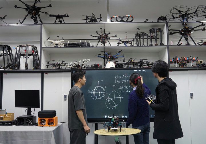 上海交大机器人研究所,是我国最早从事机器人技术研发的专业机构之一,主要在机器人学、工业机器人作业系统与装备自动化技术、生物医学机器人与生机电一体化技术等领域,开展研究和产学研合作。这是2023年11月24日,学生们在研究所的无人系统实验室讨论项目。