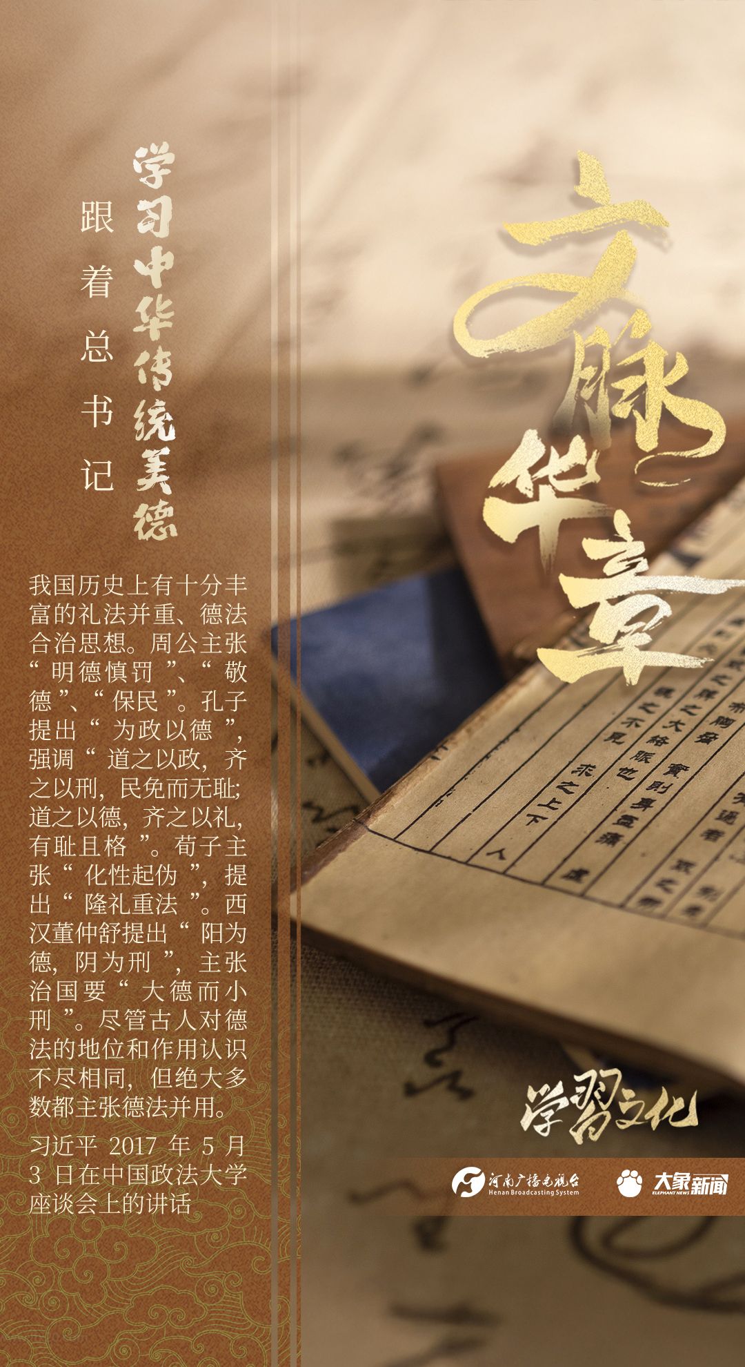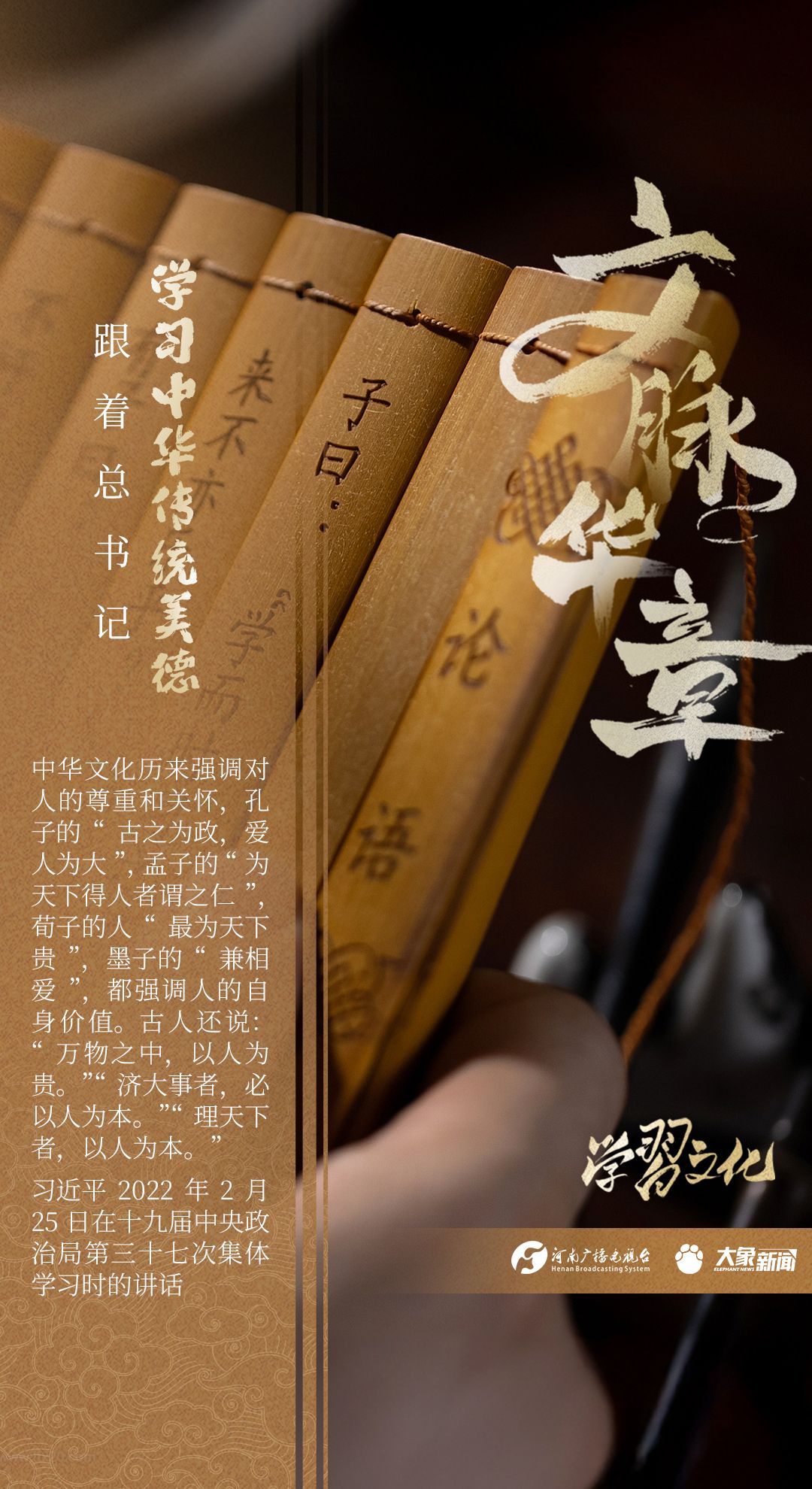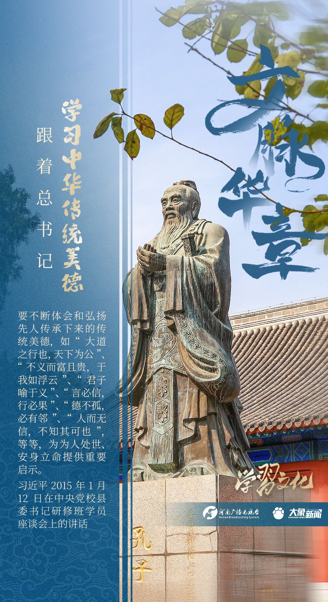 习近平总书记高度重视弘扬中华民族传统美德,常常引经据典,引领我们体会先人传承下来的优良民族精神,为我们传承发展中华优秀传统文化,用中华传统美德成风化人提供了根本遵循。让我们一起,跟着总书记,学习古人的智慧。