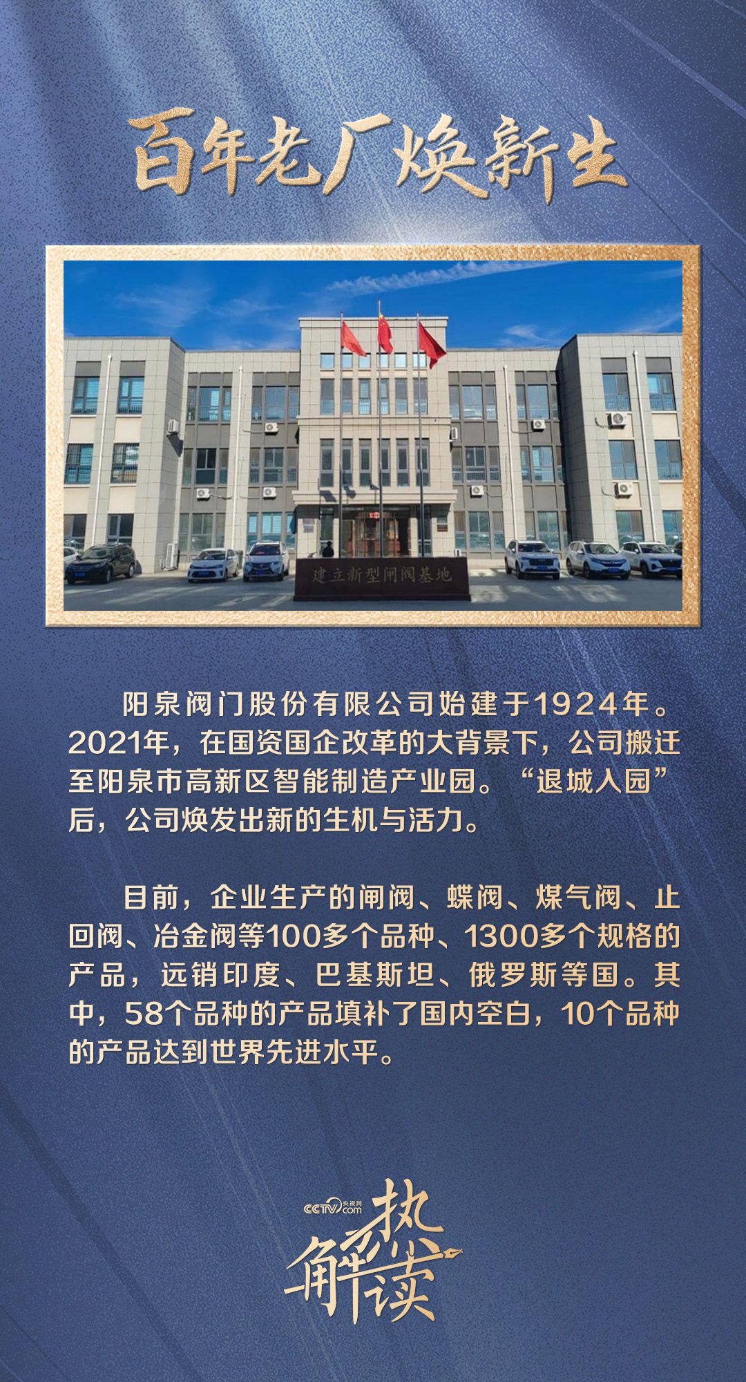 此后,“永巨”矢志不渝,从二十世纪五六十年代公私合营,合并八家企业,改称阳泉市阀门厂,到二十世纪九十年代改制为阳泉阀门股份有限公司,再到2021年响应国资国企改革,“落户”阳泉高新区智能制造产业园。这家百年国企,在激烈的市场竞争中不断加大研发投入和技改力度,以科技创新塑造发展新优势,如今已成为国家级专精特新“小巨人”企业。