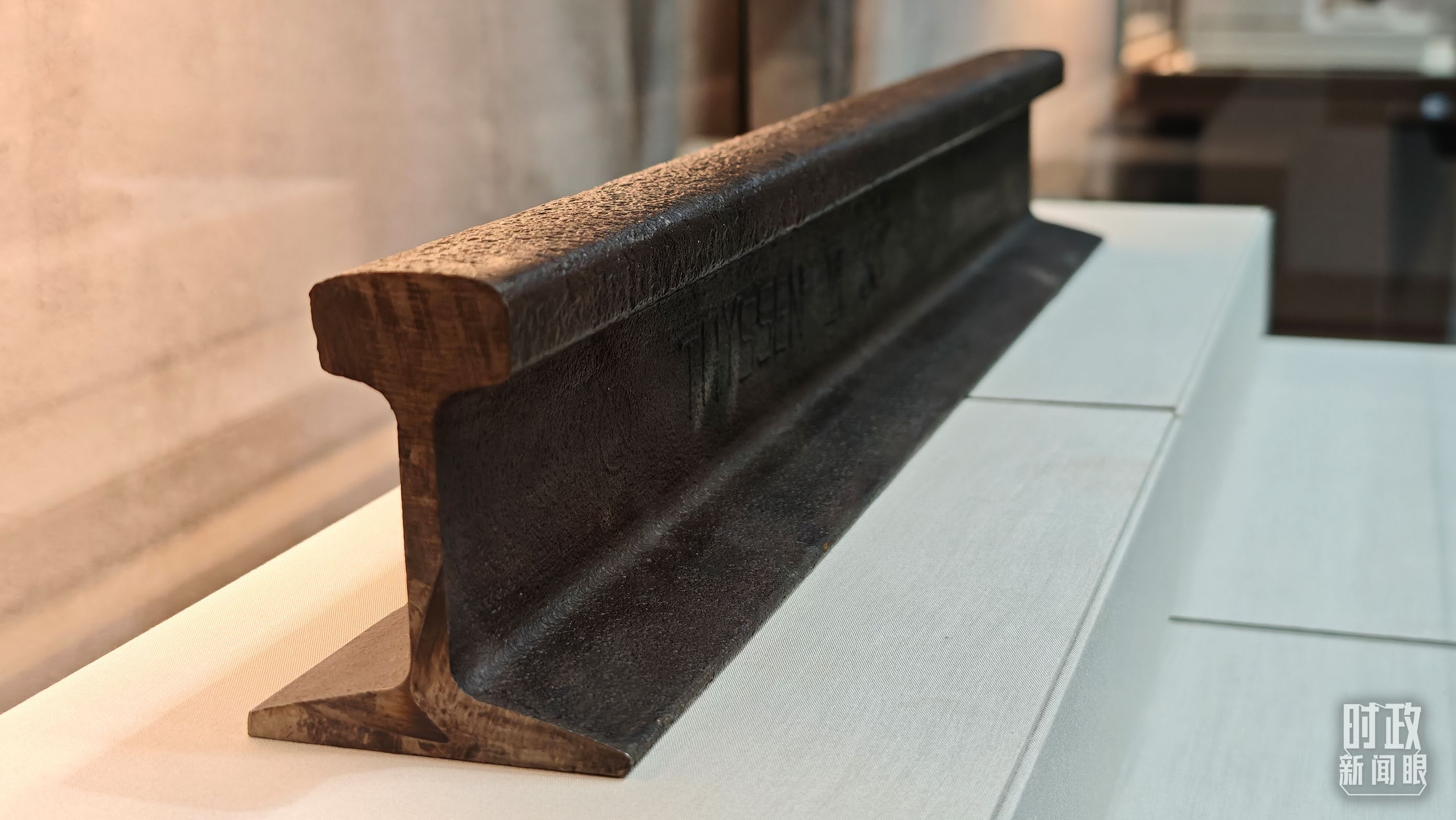 △百团大战纪念馆展陈——正太铁路铁轨。(总台央视记者许永松拍摄)