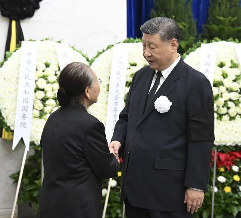 6月12日,热地同志遗体在北京八宝山革命公墓火化。习近平、李强、赵乐际、王沪宁、蔡奇、丁薛祥、李希等前往八宝山送别。这是习近平与热地亲属握手,表示深切慰问。