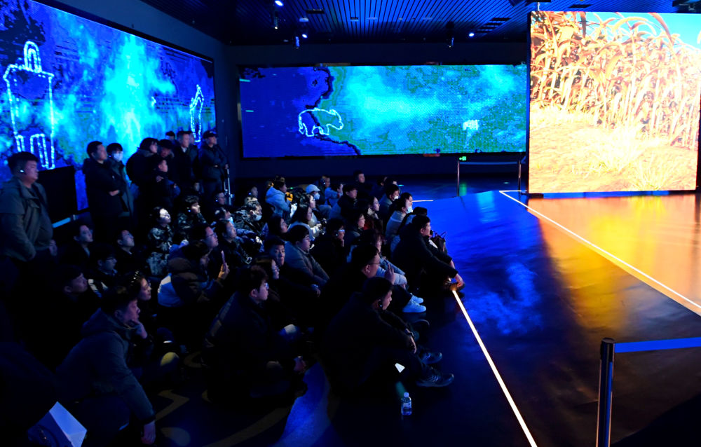2025年2月21日,游客在安阳殷墟博物馆新馆数字展厅内观展。