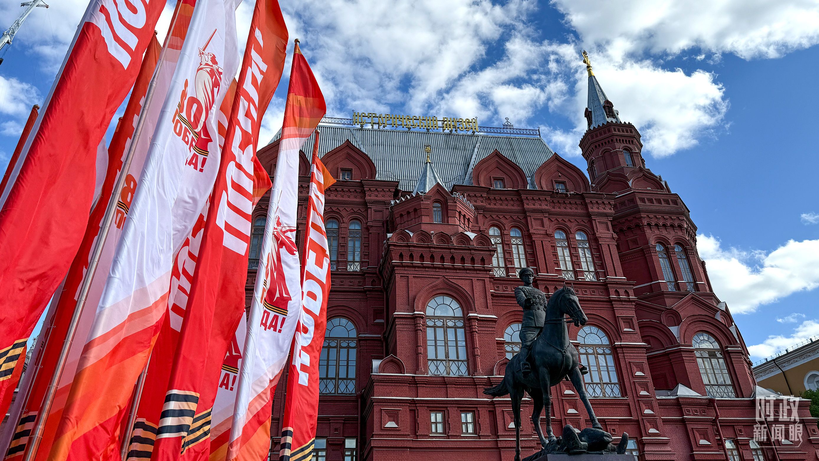 △莫斯科街头的胜利日旗帜。(总台央视记者杨波拍摄)