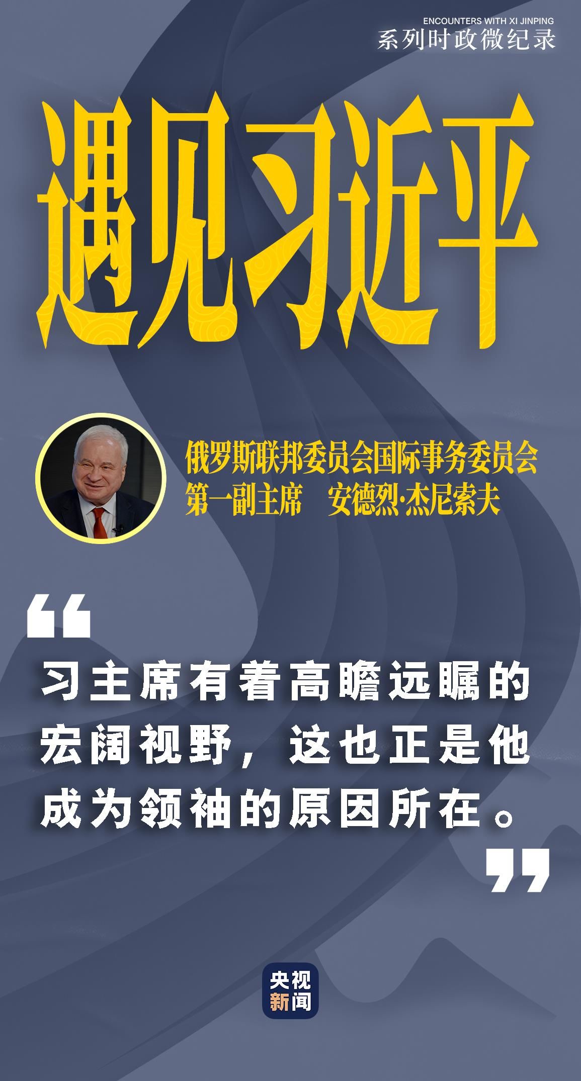 安德烈•杰尼索夫,俄罗斯联邦委员会国际事务委员会第一副主席,2013年至2022年曾任俄罗斯驻华大使。在他看来,“中国制定了到2035年和2049年远景目标,世界上没有其他国家制定如此长远的发展规划,习主席有着高瞻远瞩的宏阔视野,这也正是他成为领袖的原因所在。”