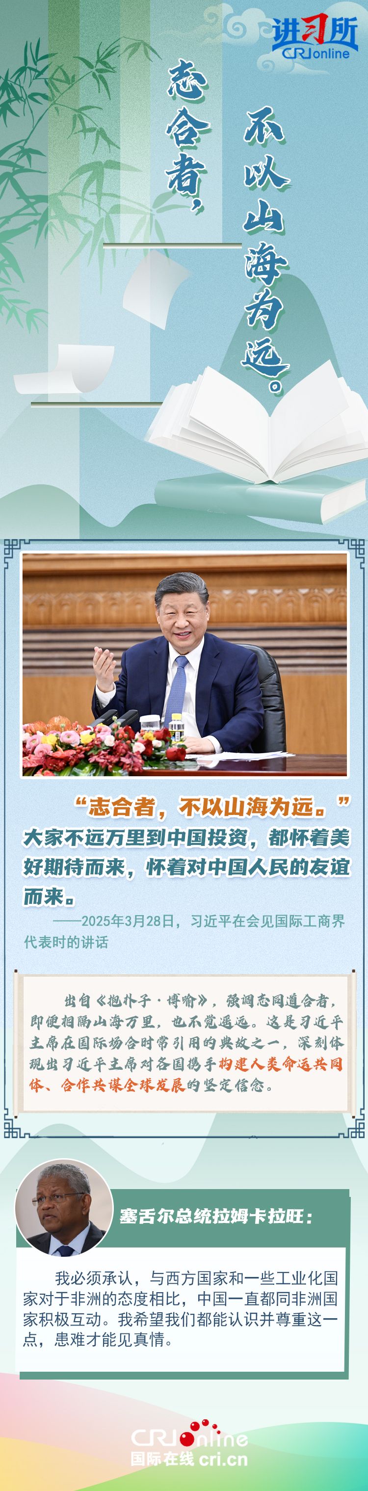 近年来,习近平主席多次在国际场合引述《中庸》《论语》等中国典籍中的名句,分享东方大国的处世之“道”,在世界百年变局加速演进的历史关头,为全球治理贡献中国方案、中国智慧。今天是“世界读书日”,让我们一起从习主席引用的这些经典佳句中感悟大国领袖的天下情怀与时代担当。