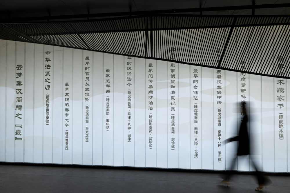 2024年4月15日,观众在湖北云梦县博物馆睡虎地秦简展厅参观。睡虎地秦简被发现于1975年,是中国考古史上首次发现的秦简。