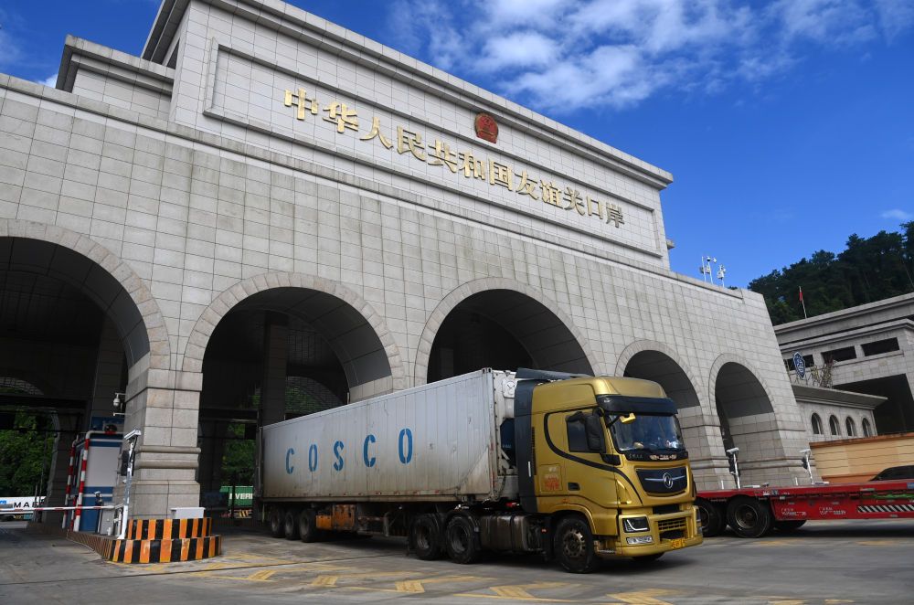 2024年8月26日,一辆货车通过广西凭祥友谊关口岸。友谊关口岸是西部陆海新通道的重要节点,是中国通往东盟最大的陆路口岸,也是我国通往越南最便捷的陆路大通道之一。满载着东盟国家特色水果、农副产品与中国电子配件、大型设备等货品的车辆在此“双向奔赴”、川流不息。2024年,友谊关口岸年内出入境货车数量首次突破50万辆次,同比增长15.96%,创历史新高。