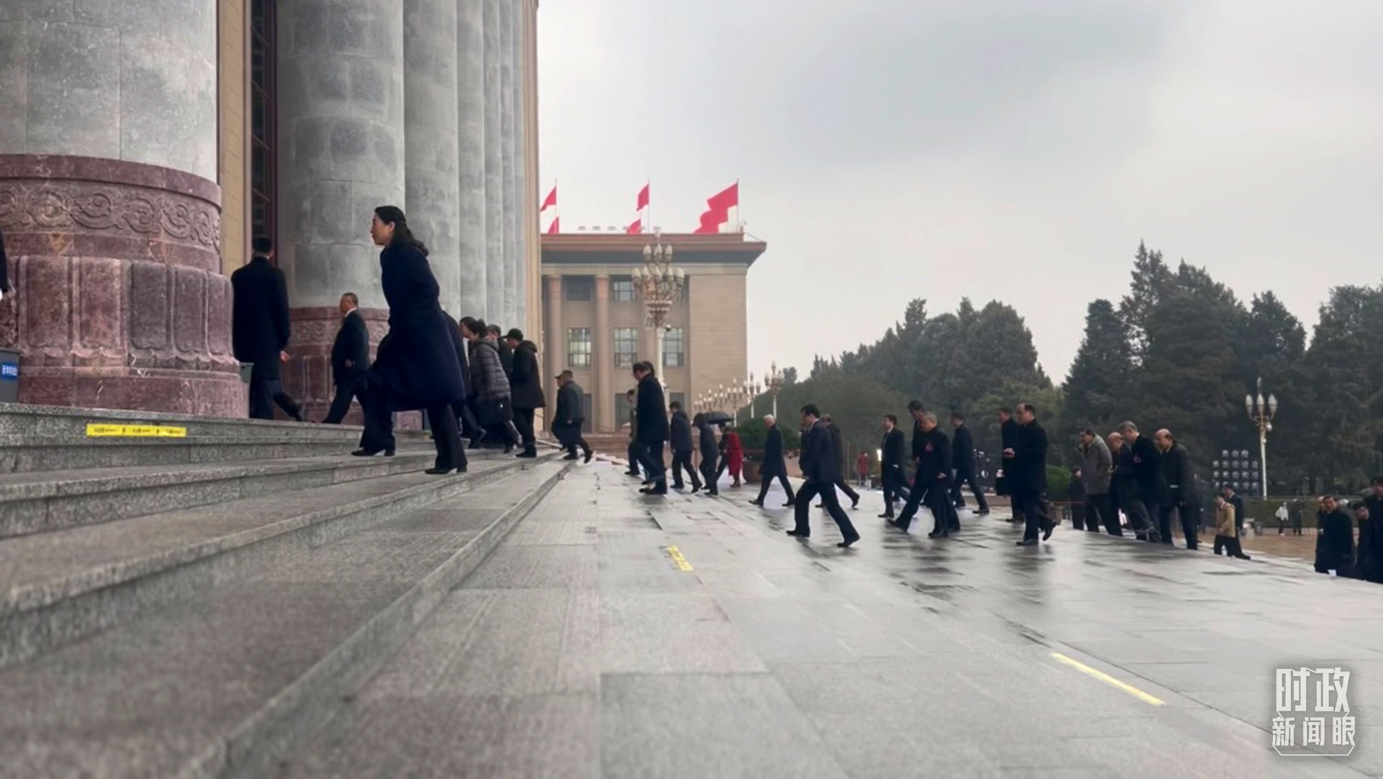 △3月4日,人民大会堂外红旗飘扬。(总台央视记者赵化拍摄)