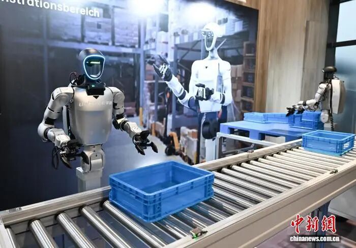 资料图:宇树科技人形机器人模拟流水线生产场景。中新社记者 王刚 摄