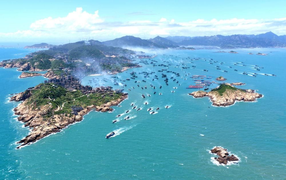 △2025年8月16日,在福建福州连江县苔菉国家中心渔港,众多渔船扬帆出海。