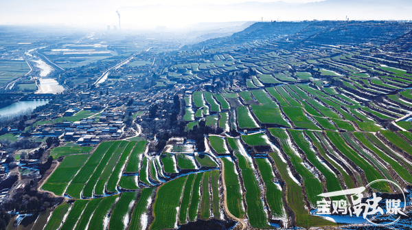 东坡村位于贾村塬的东段,站在村口,视野开阔,可远眺平静如镜的王家崖水库,近览层层铺展的梯田。一场冬雪过后,梯田间银雪与绿麦交织如缎带盘绕,向阳坡面的麦苗裹残雪难掩新绿,背阴处则白雪皑皑,宛如大自然绘就的生态画卷。路过的市民见此美景纷纷驻足留影,快门声此起彼伏。