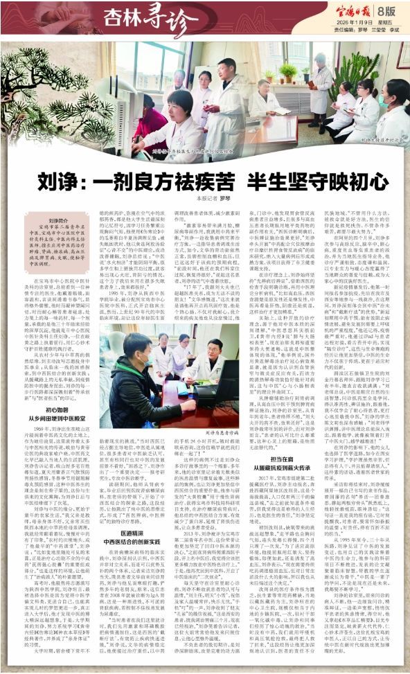 从农村少年与中草药的偶然结缘,到主动改写志愿投身中医事业;从临床一线的困惑探索,到中西医结合的创新实践;从援藏路上的无私奉献,到疫情防控中的挺身而出,刘诤的每一步行医路都深深镌刻着“传承创新”与“医者担当”的印记。