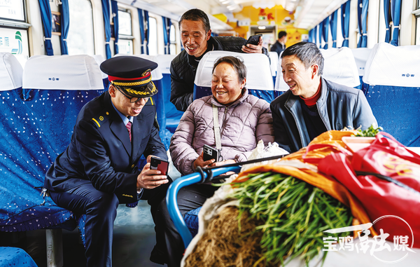 下午3时30分,列车驶入略阳站,卖完菜的山民背着背篓上车,罗宝成一边帮老人把背篓放到安全的地方,一边和老人拉家常,熟络得像老朋友。多年的相守,罗宝成早已成了这趟车上的“活地图”和“百事通”,他熟悉6063次列车经过的全线350公里沿途每一个村庄和站台,知道哪个村庄的孩子在哪个城市上学,知道哪位老人需要特别照顾,知道山里的时令特产何时运往城市。他与旅客之间,早已超越了简单的服务与被服务,更像是好邻里。